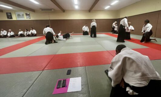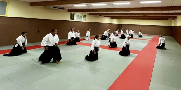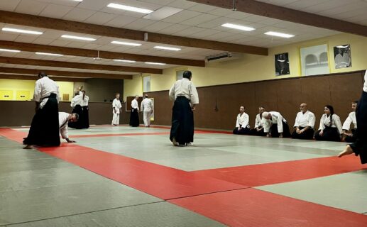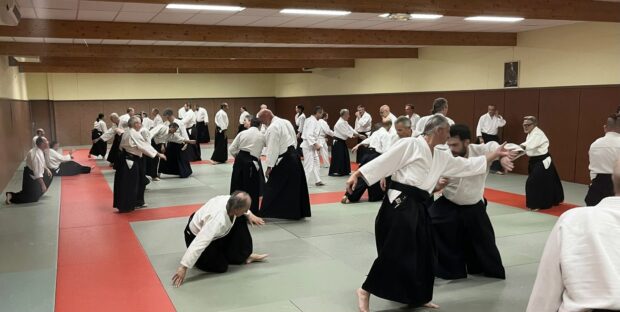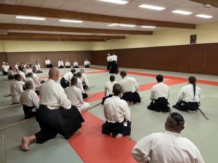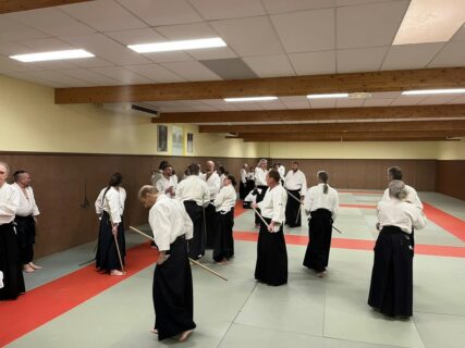 - Dimanche 12 octobre : Stage de Ligue, animé par Farid Si Moussa (DFR) avec la participation d’un membre du CTR (Serge Retourné), qui a réuni près de 50 participants sur le tapis, pour une pratique alternée de travail à mains nues et de Jo. Au menu : contact et opportunités, manipulation et kata de Jo, unité du corps et parallèles entre Shiho Nage et Uchi Kaiten Nage. La bonne ambiance de cette journée et l’effectif nombreux ont été des signes très positifs pour la suite de la saison.
